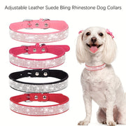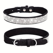 This stylish leather dog collar is decorated with sparkling rhinestones, providing an elegant and standout look. The collar is fully adjustable for a comfortable fit and suitable for small and medium dogs. The strong leather makes the collar durable and comfortable for everyday use. Whether you're on a walk or have a special occasion, this collar will complete your dog's look.