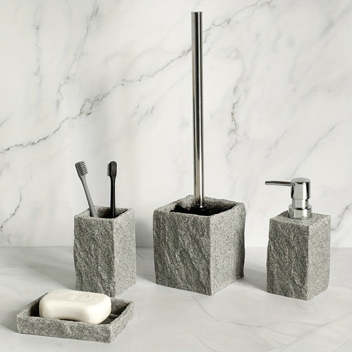 Nézd meg a részleteketSzara fürdőszobai készlet gyantából – Luxus 4 elemes készlet elegáns fürdőszobához