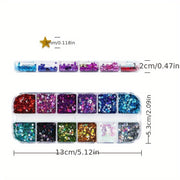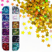 12 Kolorów Gwiazdek Sypkich – Brokatowe Sypkie w Długim Pudełku do DIY i Scrapbookingu