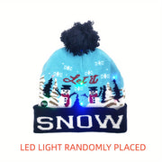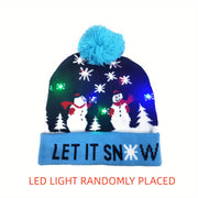 Ten wesoły kapelusz LED wprowadza atmosferę i radość podczas świąt! Kapelusz ozdobiony jest uroczym bałwankiem oraz napisem "LET IT SNOW!", a także posiada wbudowane oświetlenie LED, które tworzy magiczny efekt. Pompon na górze dopełnia całość, co czyni go idealnym kapeluszem na świąteczne przyjęcia, imprezy lub po prostu zimowy spacer. Ten kapelusz jest odpowiedni dla każdego, kto chce w radosny sposób świętować zimę.