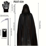 Przekształć się w ikoniczną Kostuchę z tym kostiumem. Zawiera długi czarny płaszcz, kosę, szalik z przerażającym wzorem czaszki oraz rękawice z motywem kości. Idealny na Halloween lub tematyczne imprezy, ten kostium zapewnia niezapomniane wrażenie i sprawia, że wyróżnisz się bez trudu.