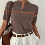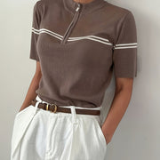 Damska Polo Koszulka w Paski z Zamek – Lekka Letnia Casual Top