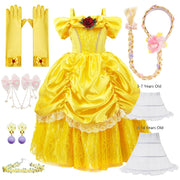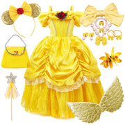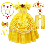 Ta wspaniała sukienka księżniczki dla dziewczynek spełnia jej marzenia, tak jak Belle z "Pięknej i Bestii". Sukienka została zaprojektowana, aby dać magiczne poczucie elegancji i pewności siebie, idealna na urodziny, karnawał lub specjalne okazje. Dzięki czarującym detalom, takim jak pasująca tiara, rękawiczki i akcesoria, twoja córka poczuje się naprawdę jak księżniczka. Miękki, oddychający materiał zapewnia komfort, dzięki czemu może swobodnie poruszać się, odgrywając swoją królewską rolę.
