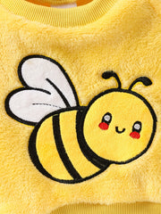 Ten uroczy 3-częściowy flanelowy zestaw dla niemowląt składa się z bluzy z kapturem z uroczym haftem pszczół, miękkiego swetra i wygodnych spodni dresowych. Miękka flanelowa tkanina zapewnia dodatkowe ciepło, idealne na chłodniejsze miesiące. Praktyczny zamek błyskawiczny w bluzie z kapturem umożliwia łatwe zakładanie i zdejmowanie zestawu. Ten strój jest idealny do aktywności na świeżym powietrzu, ale także doskonały na przytulne chwile w domu. Hafty pszczół nadają zestawowi zabawny wygląd, idealny na jesień i zimę.