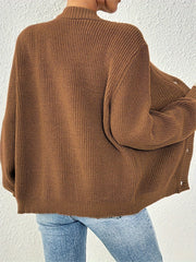 Ten elegancki sweter kardigan oferuje zarówno komfort, jak i styl. Projekt z prążkowanym wzorem i guziki nadaje kardiganowi klasyczny wygląd, podczas gdy miękki, dziany materiał utrzymuje ciepło w chłodniejsze wiosenne i jesienne dni. Prosty, jednolity kolor sprawia, że jest to wszechstronny element garderoby, który można łączyć z prawie każdą stylizacją. Luźny krój zapewnia wygodne dopasowanie, idealne na casualowy lub półformalny look.