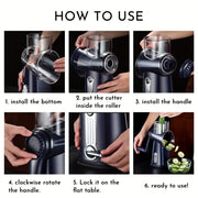 Această răzătoare solidă 5-în-1 pentru bucătărie combină funcții multiple într-un singur aparat compact. Datorită tamburilor rotativi, poți răzui, tăia și toca cu ușurință brânză, legume, nuci și altele. Baza antiderapantă asigură stabilitate în timpul utilizării, iar designul care economisește spațiu menține blatul ordonat. Ideală pentru orice pasionat de gătit care caută eficiență și versatilitate.