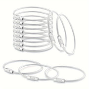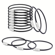 Acest set de 10 brelocuri din oțel este ideal pentru organizarea cheilor, marcarea bagajelor sau utilizarea în diverse activități în aer liber, cum ar fi camping, navigație și drumeții. Fabricate din oțel inoxidabil de înaltă calitate, cablurile sunt durabile și rezistente la condițiile meteorologice. Setul oferă versatilitate datorită închiderii convenabile cu diametrul de 50 mm, potrivită pentru diverse utilizări, cum ar fi fixarea cheilor sau etichetarea bagajelor.