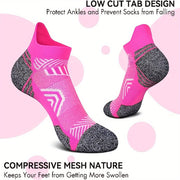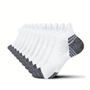 Aceste șosete sportive de compresie pentru femei sunt concepute pentru confort și suport maxim. Realizate din material respirabil, ajută la absorbția transpirației și previn mirosurile neplăcute, oferind în același timp suport picioarelor tale în timpul activităților sportive sau uzului zilnic. Setul conține cinci perechi, astfel încât să ai întotdeauna o pereche curată și proaspătă pentru fiecare zi. Ideal pentru alergare, mers pe jos sau uz casual!