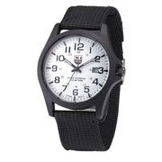 Proiectat pentru bărbatul aventuros, acest ceas tactic combină robustețea cu un stil practic. Cu o carcasă neagră mată și o curea puternică din nylon țesut, este creat să înfrunte elementele naturii. Cadranul luminos cu ace luminescente asigură o citire ușoară a orei, atât ziua, cât și noaptea. Ideal pentru activități în aer liber sau utilizare intensă zilnică.