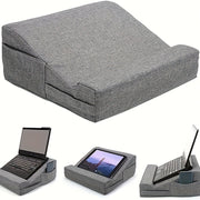 Bucură-te de lucru sau citit pe laptopul sau tableta ta cu această pernă ergonomică, proiectată pentru confort și comoditate maxime. Perna moale, texturată, susține dispozitivul tău la un unghi ideal pentru scris sau vizionat, în timp ce buzunarele laterale îți păstrează telefonul, telecomanda sau accesoriile la îndemână. Ideală pentru utilizare pe paturi, canapele sau oriunde dorești să te relaxezi fără a-ți încărca gâtul sau încheieturile.