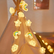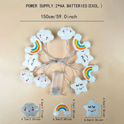 Adaugă puțină magie camerei tale sau decorațiunilor în aer liber cu aceste lumini LED fermecătoare! Luminile în formă de nori, stele și curcubee creează o strălucire moale și caldă, perfectă pentru iluminare ambientală. Indiferent dacă le vei agăța în dormitor, le vei folosi pentru decorațiuni la petreceri sau le vei lua cu tine în cort, această ghirlandă luminoasă oferă un aspect fermecător oriunde. Ideală pentru o seară confortabilă sau ocazii speciale, cum ar fi Halloween și Crăciun.
