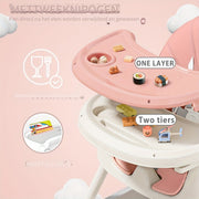 Acest scaun versatil pentru copii se adaptează nevoilor copilului tău datorită înălțimii reglabile și centurii de siguranță. Cu un scaun confortabil, căptușit, tavă detașabilă pentru curățare ușoară și o bară distractivă cu jucării, mâncatul și joaca devin simple și plăcute. Construcția solidă se pliază complet, economisind spațiu la depozitare, ideal pentru orice casă.