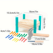Acest joc din lemn cu ciocan a fost conceput pentru a permite copiilor mici să se joace într-un mod distractiv și educativ. Cu ajutorul cuielor colorate, își exersează coordonarea mână-ochi și recunosc diferite culori. Rama solidă din lemn asigură durabilitate și stabilitate în timpul jocului. Ideal pentru ore întregi de joacă și dezvoltarea abilităților motrice.