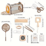 Setul Nature Explorer conține tot ce au nevoie copiii pentru o aventură palpitantă în aer liber. Cu o cușcă portabilă din lemn, plasă, lupă, busolă și alte accesorii, ei descoperă insecte și animale mici într-un mod sigur și educativ. Materialele durabile și designul prietenos fac acest set ideal pentru activități părinte-copil și încurajează curiozitatea și contactul cu natura.