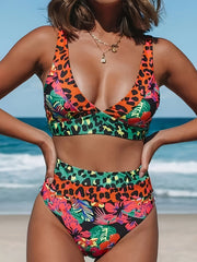 Bikini tropical cu talie înaltă și model leopard – stilat și confortabil