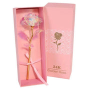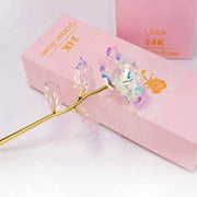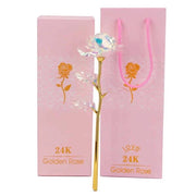 Trandafirul diamant acoperit cu aur de 24 de carate este un cadou uluitor, perfect pentru Ziua Îndrăgostiților sau alte ocazii speciale. Acest trandafir combină luxul cu eleganța și simbolizează dragostea nemuritoare și recunoștința. Datorită finisajului său strălucitor și designului unic, acest trandafir lasă o impresie durabilă asupra oricărui destinatar. Un cadou prețios, care este atât frumos, cât și semnificativ, ideal pentru momente romantice.